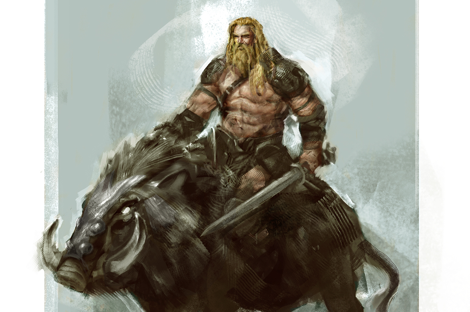 Magnus Chase, seize ans, erre depuis deux ans dans les rues de Boston à la suite de la perte de sa mère. Livré à lui-même, il apprend à survivre et se forge un caractère bien trempé. Son oncle finit un jour par le retrouver, et va lui révéler le secret de sa naissance. Magnus est en réalité le fils de Freyr, Dieu nordique du soleil et de la pluie - représenté ci-dessus à dos de sanglier. Il lui apprend également que son épée a disparu il y a deux mille ans et qu'elle est un élément essentiel dans les nombreuses prophéties.