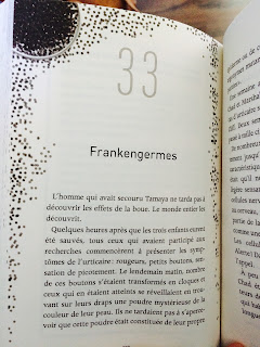 A vouloir aborder plusieurs thématiques, je trouve que l'on se perd. J'ai fait une pause juste au moment où Tamaya rentre chez elle, et qu'elle s'aperçoit que son bras est contaminé. J'ai alors imaginé qu'elle allait être dotée de super pouvoirs, et que j'allais embarquer dans quelque chose de fantastique, semblable à la série Les Incroyables pouvoirs d'Alex - pour ceux qui connaissent ! Pourtant c'est un tournant bien différent que prend le roman. Je pense que je m'attendais à quelque chose de plus léger, mais c'est quelque chose de relativement pesant que j'ai trouvé - même les pages finissent par être envahies de bactéries ! La plume de Louis Sachar reste tout de même très agréable, ça, on ne peut pas le nier. Malgré tout, la combinaison harcèlement scolaire / thriller écologique n'a pas fait de ce roman un coup de cœur pour moi. Je pense tout de même que le suspens est au rendez-vous et pourrait en faire un roman plaisant pour les personnes avides du genre !